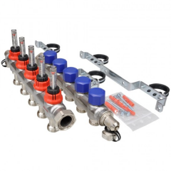 Profitherm debi göstergeli ısıtma kolektörü, paslanmaz çelikten üretilmiş olup, gidiş barında entegre debi göstergelerine ve dönüş barında Profitherm aktüatörlerle uyumlu termostatik başlıklara sahiptir. Düz yalıtımlı, soldan bağlantılı ısıtma kollektörü, doldurma, boşaltma ve hava alma vanaları ile birlikte sunulmaktadır.